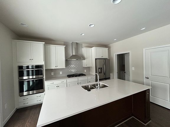 Gourmet Kitchen: A chef's dream with stunning quartz countertops, brand-new stainless steel appliances, a large island, and ample cabinetry.
