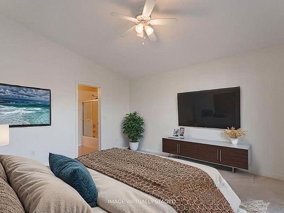 Covered patioVaulted ceilingsSpacious islandTile flooringCeiling fansWhite cabinets
