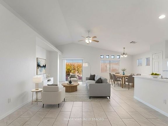 Beautifully renovated 3-bedroom, 2-bath single-story home in North Las Vegas. This move-in ready property features vaulted ceilings, ceiling fans, and tile flooring throughout all living areas and bedrooms. The kitchen offers white cabinets, a spacious island, and stunning new Calacatta quartz countertops. Freshly painted about a year ago, the home feels light and welcoming. The backyard includes a covered patio, perfect for relaxing or entertaining. Conveniently located within walking distance to Findlay Clifford Middle School and close to Craig Ranch Park, shopping, and restaurants.