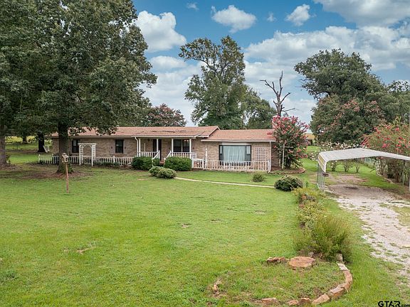 Country home on 10 acres in Arp, TX! This 3 bedroom, 2 bath home has a 2 car detached carport plus a shop/barn and two storage buildings. Features include an open floor plan with two living areas, fully equipped kitchen, carpet and vinyl flooring, ceiling fans, blinds, large bedrooms and a sunroom. Beautifully landscaped with mature trees and fenced pastures, this property is ready for you to make it your own. Don't wait. Come see it today!