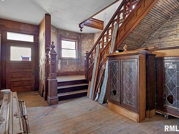Diamond in the rough. This house is like a castle with the turret decorated with sculptural details. So many of the architectural details have been preserved throughout this 3-story home. The original front door with etched glass opens to a breathtaking staircase. There are 3 wood burning fireplaces on the first and second floor. A walk-up staircase to the floored attic. The attic opens up tons of potential for added finished space. The home has many functioning transom windows with all of the hardware intact. Much of the woodwork has been removed to take out much of the lathe and plaster. The woodwork that has been removed is believed to be in the home where it can be refinished and put back. The carriage house was once a two-car garage with an apartment above it. This one is one of kind and needs someone to put it back to its original glory. This is now your opportunity for a winter project! Restore this historic part of this town.