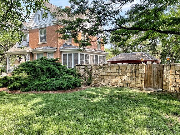Queen Anne Victorian style brick home for sale located in the rural north central Kansas town of Smith Center, KS. This beautiful and unique home is special find for architecture lovers and fans of original woodwork and old-world charm. Wooden "gingerbread" trim in scrolled and rounded "fish-scale" patterns graces the home's gables and porches with massive cut-stone foundation. These are all classic features of the Queen Anne Victorian style which are prominent in this home. The home boasts a large, private yard with gazebo; a great place for entertaining or enjoying the temperate Kansas climate. The home is littered with original charm from the hardwood floors, unpainted trim-work, Victorian fireplace and the original hardware. Living Area: 3,261 (total) - 2,200 (above grade) + 1,061 (finished basement) | Bedrooms: 5 - Bathrooms: 1.5 | Property Amenities & Features: Appliances included | whole-house vacuum system | Private Fenced Yard | Full Finished Basement | Outdoor Security Camera System