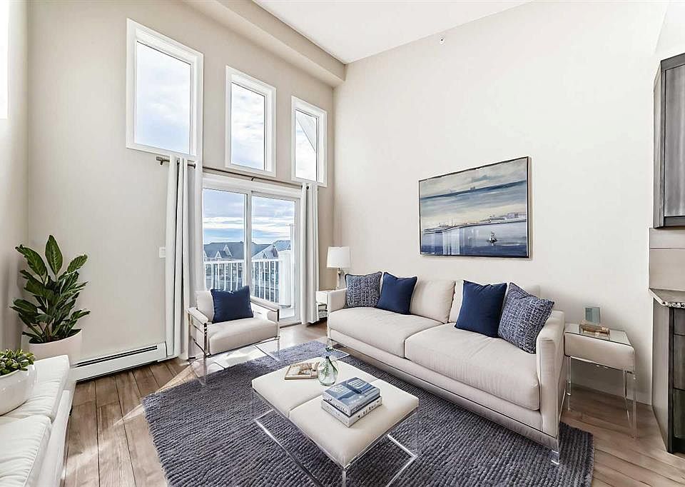 WHERE LAKE LIVING MEETS WITH CONVENIENCE! This stunning TOP-FLOOR, EAST-FACING condo perfectly blends STYLE, COMFORT, AND LOCATION—just a few blocks from the community beach and directly across from two schools. From the moment you step inside, you’ll be captivated by the 14-FOOT VAULTED CEILING and the TWO-STOREY WALL OF WINDOWS in both the living room and primary bedroom. Natural light pours in, creating a bright, airy atmosphere rarely found in condo living. Step through elegant French sliding doors onto your PRIVATE EAST- FACING BALCONY—an ideal retreat to enjoy morning sunrises, evening BBQs (with a convenient gas line hookup), or quiet moments of relaxation. The kitchen is a true highlight, featuring RICH WOOD-GRAIN CABINETRY, GRANITE COUNTERTOPS, a full stainless steel appliance package, and a walk-in pantry for exceptional storage and organization. The OPEN-CONCEPT living and dining area flows beautifully from the kitchen, showcasing laminate flooring and plenty of room for entertaining. The primary suite feels like a private sanctuary with its SOARING CEILING and ample closet space. The SECOND BEDROOM—also complete with ample closet space—is located down the hall, next to the 4-piece main bath, making it perfect for family, guests, or a home office. Additional features include IN-SUITE LAUNDRY, a TITLED PARKING STALL, and access to an ON-SITE GYM and playground. The complex also offers visitor parking and traffic-calming school zones for added safety. Living here means more than owning a home—it’s embracing a LAKE LIFESTYLE. Stroll a few blocks to the PRIVATE BEACH, explore nearby PARKS AND PATHWAYS, or take advantage of local shopping, dining, and amenities. With schools just steps away and quick access in and out of the community, this home offers both practicality and beauty. If you’ve been dreaming of LAKE LIVING WITH SOARING CELINGS, ABUNDANT NATRUAL LIGHT light, and MODERN COMFORT, this is the condo that has it all. Don’t wait—schedule your private showing today!