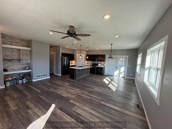 No showings until Friday, November 7, 2025.  Spacious 6 bed, 3 bath home that backs to Centura Hills Golf Course in Cairo!  Enter into an inviting and open-concept floor plan of the kitchen, dining and living room.  The kitchen features black stainless appliances and a nice pantry.  The main floor primary bedroom features a large en-suite bathroom and walk-in closet.  There are two other main floor bedrooms each with a walk-in closet.  The main floor laundry room/drop zone is just off the garage entrance. The basement has a large open family room and game room, with plenty of space for gathering.  The basement also features three additional large bedrooms and 1 full bath.   The backyard deck has a view of the beautiful tree lined golf course.  You'll appreciate the spaciousness of the backyard for all sorts of activities.  There is also a huge three-car garage and underground sprinklers.