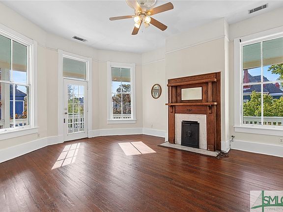 Welcome to this splendid Victorian-style condo in downtown Savannah, just steps from Forsyth Park. This spacious 2-bedroom, 1-bathroom residence blends historic charm with modern comforts, featuring soaring ceilings, intricate moldings, 2 fireplaces, and beautiful hardwood floors that capture the essence of Savannah's architectural elegance. Flooded with natural light from large windows, the living area provides a bright, inviting atmosphere. Step out onto the private wraparound porch to survey the neighborhood or enjoy a fresh cup of coffee outdoors. Nestled in the center of the condo, the cozy kitchen retains its vintage charm with wood cabinets and efficient counter space. The split floor plan is perfect for roommates, and generous bedrooms offer a tranquil retreat. Located off the hallway, the full bathroom has a tub/shower combination and pedestal vanity. With an ideal location and classic appeal, this condo is a great find in Savannah's vibrant downtown district.