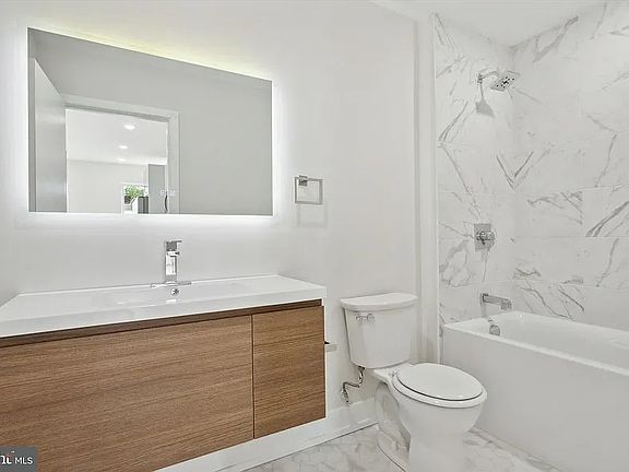 Welcome to a stunning, newly constructed apartment complex offering modern luxury living. The units boast a wealth of high-end finishes, including sleek, light-colored hardwood flooring, and bright, contemporary paint palettes that create an airy and welcoming atmosphere. Kitchens are a focal point, featuring modern grey cabinetry, stainless steel appliances, and a convenient breakfast bar. The luxurious bathrooms are equipped with large, illuminated mirrors, elegant wood tone vanities, and floor to ceiling marble look tile surrounding the shower/tub. Recessed lighting throughout the living spaces adds a clean, sophisticated touch. This multi story building also presents a sharp, modern exterior with private balconies, setting a tone of upscale urban living. The combination of new construction and premium interior upgrades makes this property highly appealing to discerning renters.