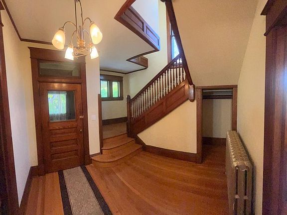 Built in 1901 by William Figge, brewmaster for Hamms Brewery is an essential piece to Historic Daytons Bluff Home is adorned with original woodwork, built in buffet, pocket doors, many original light fixtures, ornamental fireplace/mantle, leaded windows, recently refinished oak flooring throughout, beautiful carved spindle front staircase to the second floor with bedrooms, full bathroom complete with claw foot tub/shower, pedestal sink and tile floor. Third floor attic is huge with full height walkways and a partitioned room already in place. Use your imagination for office space, play room, artist space etc. Full basement including washer/dryer, brand new boiler and plenty of room for workshop etc. Oversized attached two stall garage with room for workshop. This oversized lot is actually two parcels with a long wooded driveway leading to the rear of the house and the large fenced side yard. Front porch and swing is perfect for waving at the neighbors and watching the sunset