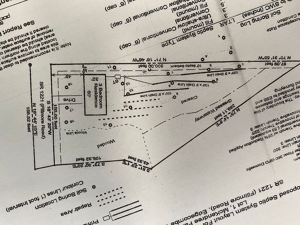 Lot is 90% cleared with 150 ft road frontage, house site is cleared and graded; septic tank permit approved, driveway tile installed by NCDOT; county water
