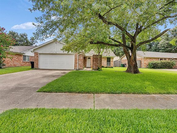It's time to own your own home & this cute 3/2/2 is the perfect place to get started! Located in the highly sought-after Meadowgreen neighborhood of Clear Lake, the brick-and-wood exterior & traditional design offers lasting curb appeal. Inside, enjoy warm wood accents throughout & a cozy gas-log fireplace anchoring the large living area. The kitchen is thoughtfully arranged with stainless steel appliances, island prep station & ample space for entertaining in the eat-in area, with access to the backyard. Step outside to a spacious backyard—ideal for gatherings, gardening or play. The firepit area means a place to relax & enjoy the evening. Use the storage shed for extra holiday decor, lawn equipment, etc. Low taxes and HOA fees, zoned for CCISD schools & close proximity to highways for commuting, shops, restaurants, & businesses--what a great way to get your feet wet in the homeownership world in a convenient location.