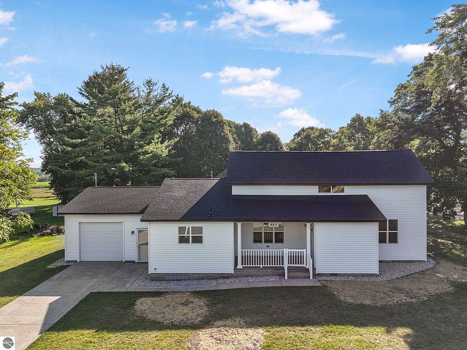 Step into a piece of Cadillac’s history with this charming, multi-generational 5-bedroom farmhouse, which has been thoughtfully updated while maintaining its classic character. With five bedrooms plus an office, there’s plenty of flexibility for family, guests, or work-from-home needs. The inviting main level showcases beautiful hardwood floors, a convenient main floor laundry, and a welcoming floor plan designed for everyday living. The kitchen flows easily into the dining and main living spaces, making this home ideal for gatherings. Upstairs, three bedrooms with ample closets provide space for everyone, while the full basement offers excellent storage or workshop space. An attached one-car garage with extra storage space adds to the home’s practicality. The large, covered front porch off the formal front entry is the perfect place to enjoy a quiet morning coffee, while the side entry doubles as a practical mudroom and informal entrance. Major updates completed in 2025 give you peace of mind for years to come, including a new roof, windows, siding, electrical service, fresh paint, and more. These modern improvements blend seamlessly with the home’s timeless farmhouse appeal. Set on a generous corner lot, the property provides plenty of outdoor space for gardening, play, or future landscaping projects. Its location places you close to downtown Cadillac, schools, and local amenities, offering both convenience and small-town charm. If you’ve been dreaming of a historic home with character with updates and space to grow, this farmhouse is ready to welcome its next chapter.