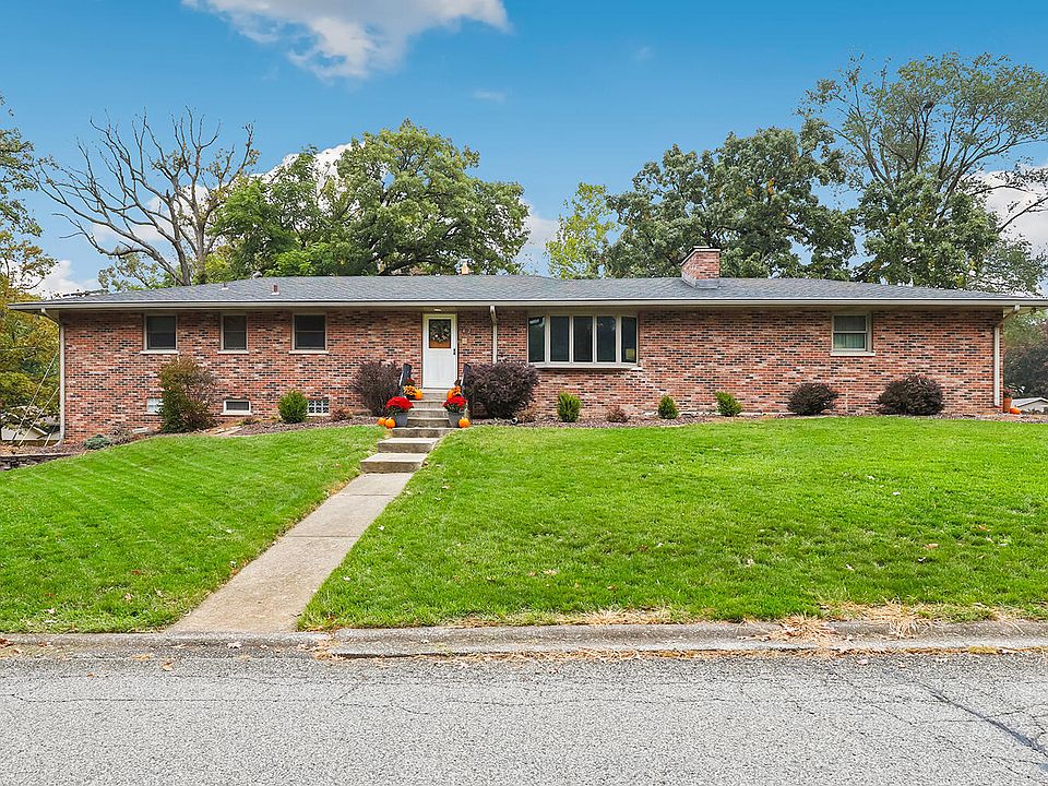 Welcome home to this sprawling brick ranch in the heart of Schererville! The inviting entry flows into the inviting living room with newly refinished hardwood floors, a huge bay window and a timeless wall-to-wall stone fireplace, a true focal point! Prepare meals in the charming kitchen with nostalgic finishes, built-in pantry and a quaint breakfast bar. The adjacent formal dining room is the perfect place to host the holidays with family and friends. Retreat at day's end to the primary suite with double closets and a fully-renovated private bath with a 60x42 step-in shower. This home offers 2 additional bedrooms and a spa-inspired hall bath with double vanity and tub. Also on this level is a bonus flex room - perfect as a home office, playroom or hobby space - and a convenient laundry room with backyard and garage access. The full unfinished walk-out basement provides fantastic storage and even more potential living space. Outside, relax on the patio, overlooking the private yard with mature trees. Located on a quiet street yet close to shops, restaurants, parks, schools and all that Schererville has to offer. Come see today!