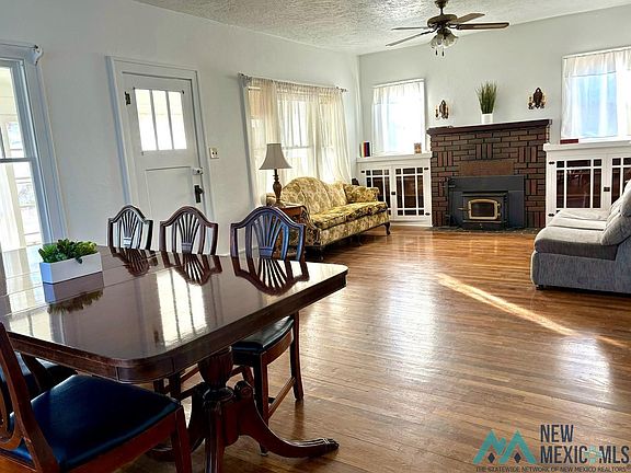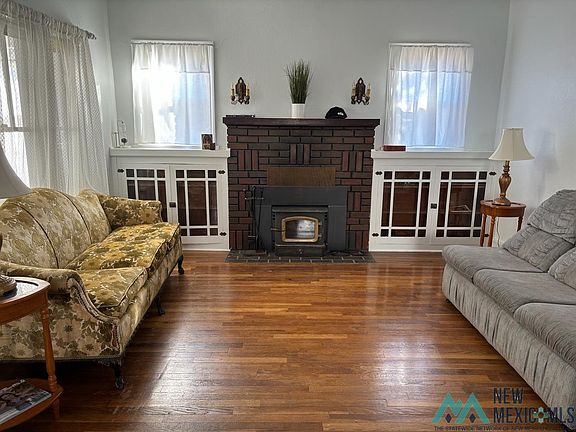 Wonderful light-filled 2 bed, 1 bath home on 0.35-acres corner lot. Upgrades include new central heat and air conditioning, new roof, new appliances, new kitchen cabinets, remodeled bathroom, upgraded electrical, new hot water heater, fenced yard - huge modern garage/shop. Original hardwood floors in this craftsman-inspired home with original light fixtures. Brick fireplace with wood-burning stove insert. Extra storage space with basement and attic. Enclosed front porch with views of Caballo Mountain range, covered patios for entertaining, 432 sq ft carport & 720 sq ft garage/metal shop with separate electric panel including 220v power outlets. Over 1100 sq ft of covered parking Original bonus as is adobe structure , needs TLC to turn it into a remodeler's dream.