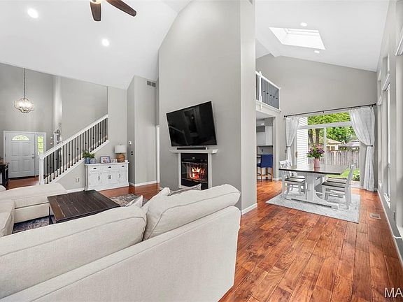 Beautiful 4 bedroom, 2.5 bathroom, 1.5 story home in the sought after Heritage subdivision. You will love the 2 story entry foyer, Brazilian wood flooring, atrium windows & vaulted ceilings that are visible as you walk in. The great room features a gas fireplace, updated can lighting & the spacious kitchen offers granite counters, SS appliances & breakfast bar. Conveniently adjacent is the 1/2 bath & main floor laundry room. The main floor master suite has vaulted ceilings, large walk-in closet & spa-like bathroom w/ dual sinks, separate shower & soaking tub. Three spacious bedrooms (one w/ a secret room), loft area & full bathroom round out the 2nd level. Unfinished basement w/ rough-in for a full bath is waiting your finishing touches. Spacious, level backyard complete w/ paver patio, numerous privacy trees & new wooden fence. Add. features include new architectural shingle roof ('24), new HVAC ('24) & oversized 24x20, 2 car garage. Home is minutes from Page Extension & Katy Trail.