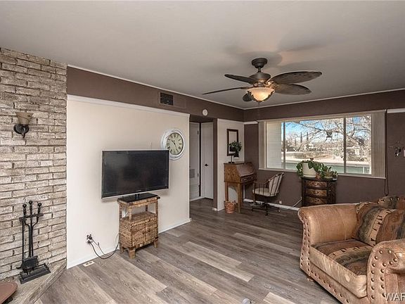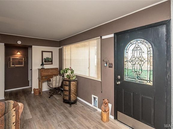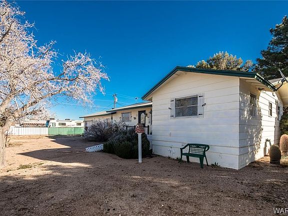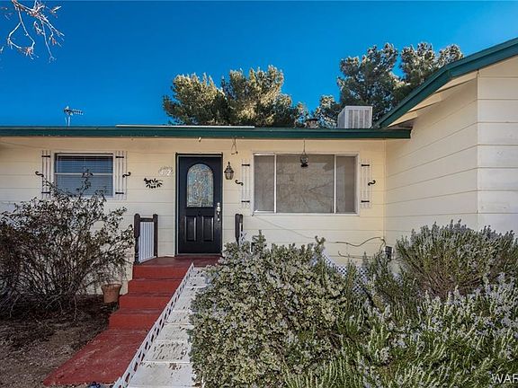 LARGE FENCED YARD* CORNER LOT*MATURE TREES AND SHRUBS* LARGE COVERED REAR PATIO* STORAGE BUILDING* ADORABLE 2 BEDROOM HOME WITH FULL BATH* OVERSIZED 1 CAR GARAGE* ARIZONA BONUS ROOM* WOOD LAMINATE FLOORING* WOOD BURNING STOVE* 2 TONE PAINT* CEILING FAN* WINDOW COVERINGS* GAS FURNACE**SPACIOUS BEDROOMS* UPGRADED BATHROOM VANITY, FULL TUB/SHOWER COMBO WITH TILED BACK SPLASH* DINING AREA* KITCHEN HAS PANTRY, GAS STOVE & REFRIGERATOR INCLUDED*LARGE PROPERTY AND CLOSE TO PARK* PERFECT STARTER HOME* PLENTY OF PARKING* BRING YOUR RV, BOAT & TOYS THIS PROPERTY HAS PLENTY OF ROOM* WITHIN 35 MINUTES TO COLORADO RIVER, LAKE AND LAUGHLIN NEVADA*