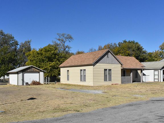 This cozy two-bedroom, one-bath home in Cleo Springs sits charmingly on a quiet court, offering a blend of small-town comfort and practical amenities. The property boasts a large backyard, perfect for outdoor activities, gardening, or simply relaxing. There are two spacious detached garages, ideal for vehicle storage, a workshop, or extra space for hobbies. A storm shelter adds peace of mind, providing a safe retreat during severe weather. The interior is compact but thoughtfully laid out, with two comfortable bedrooms and a cozy bath, making it an inviting space for anyone seeking a peaceful retreat.