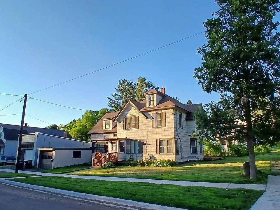 Investment or Owner-Occupant Opportunity! Heres an opportunity to own a large, two-story home with potential! Versatile property features two separate units with private entrances, ideal for owner-occupants, investors, or multi-generational living. Interior stairs make it a seamless tranistion. Main Floor Unit offers 2 bedrooms, full bath, eat-in kitchen, enclosed front porch. Upper Level Unit includes 3 bedrooms, 1 bath, bonus room ideal for a home office, craft room, playroom, updated kitchen w/new cabinets/butcher block counters. Several updates have been done throughout along with 3 new electrical panels. A unique bonus space–the property includes a former neighborhood store that’s been gutted and is ready for your vision! Use it as a workshop, garage, studio, home office, or convert it into additional living space. Large deck & a one-car attached garage. Set on a corner lot in a friendly neighborhood with newly paved roads & sidewalks, minutes from trails, downtown & WI border.
