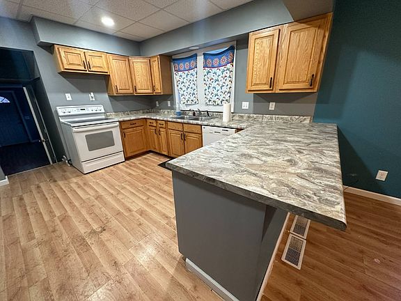 4 Bed | 2 Bath | 1,784 sq. ft Welcome to 402 N Williams Street in Atkinson, Nebraska! This spacious 1 1/2-story, 4-bedroom, 2-bathroom home is situated on a corner lot, offering both comfort and convenience. Step inside to find a large kitchen with oak cabinetry and newer countertops-perfect for meal prep, cooking, and entertaining! The adjoining dining and living rooms provide ample space and a cozy gas fireplace, ideal to warm up on those cool Nebraska winters. The two bathrooms have been remodeled within the last few years offering a fresh and modern look. The home also features a partial basement, providing flexibility for adding additional living space or extra storage. Outside, you'll enjoy a covered front porch-ideal for relaxing and taking in the outdoors. Situated on a desirable corner lot, this property includes a 2-car detached garage, offering plenty of space for vehicles/storage and the yard offers lots of room for outdoor activities, gardening, or simply enjoying the surroundings. Don't miss out on this move-in-ready home! Property Taxes/Tax Year: $1,735.80/2023 Average Monthly Utilities: Electricity $204; Gas $89; Water/Sewer/Trash $56.16 Approximate Measurements: - Kitchen: 12'x14'5" - Dining Room: 13'x11' - Living Room: 11'5"x23'3" - Main Bathroom: 9'11"x5' - Master Bedroom: 14'6"x9'7" - 2nd Bedroom: 14'6"x9'6" - 3rd Bedroom: 11'3"x14'9" - 4th Bedroom: 11'4"x14'10" - Additional Bathroom: 8'4"x5'9" - Laundry Room: 8'11"x8'11"