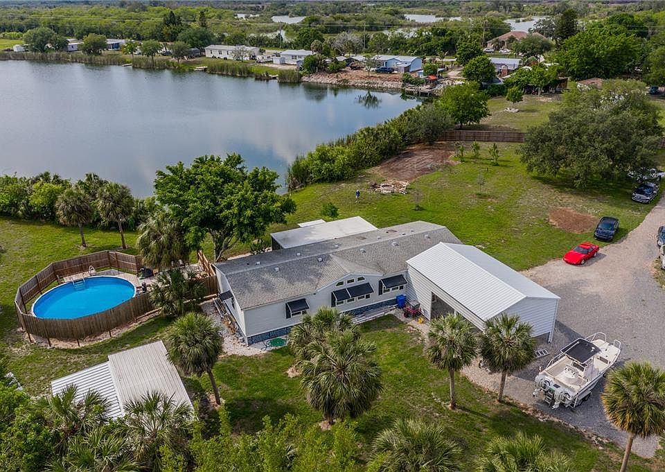 One-of-a-kind, fenced, WATER VIEW property with 3 bedrooms +Den, 2 baths, screened lanai, POOL, covered parking, and NO HOA/CDD! With about 2.5 acres of dry land and 4 acres worth of private lake, you can fish from your backyard and have plenty of space for a boat, RV, or other vehicles. PLANTATION SHUTTERS throughout, NO CARPET, and a NEW WATER HEATER (2021)! Kitchen features GRANITE COUNTERS, soft close cabinets, an ISLAND, and connects to the dining room with a Built-In China Cabinet! The double-door entry den leads into the owner's suite, complete with TWO WALK-IN CLOSETS and an UPDATED en-suite bathroom with TWO SINK VANITY and shower stall! The secondary bedrooms are roomy and each include their own WALK-IN CLOSET, and the secondary bathroom has also been completely updated with fixtures and tub/shower that really make a statement. Laundry Room has NEWER WASHER/DRYER (2018) and built-in storage! Enjoy the beautiful view from the screened porch, or take a dip in the above-ground pool with deck! The exterior features include STORAGE SHED, window awnings, landscaping, FIRE PIT, and of course the 3-CAR COVERED PARKING structure! This is a great opportunity to own your very own slice of paradise in the charming and growing town of Ruskin. Start the process today by scheduling your showing!