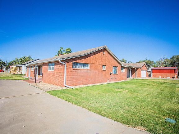 Charming brick home on a spacious corner lot! This 3-bedroom, 3-bath property offers a large living room with an electric fireplace, updated finishes throughout, a mud room, an office that could be converted into a 4th bedroom, and a two-car garage. Home features lots of storage space. The huge backyard includes a shop, storage shed, and an insulated barn with electrical—perfect for hobbies or extra storage. Sprinkler system for easy lawn care. Enjoy the back patio with a wood-burning stove, ideal for relaxing or entertaining.