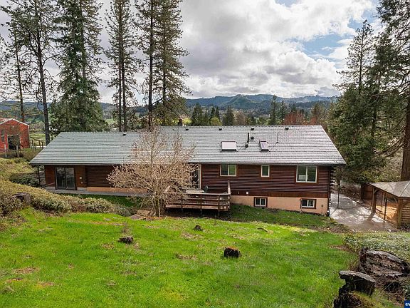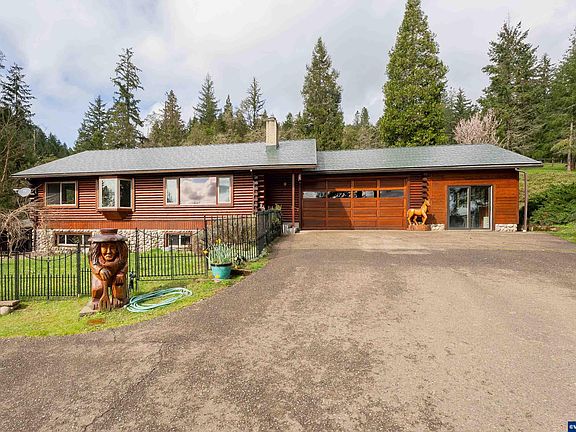 MASSIVE PRICE DROP! Stunning 2,128 sq ft chinkless log home on 7.66 acres in Sutherlin’s sunbelt with 4 pastures, barn, sheds, flex space, and retreat. 4 bed/2 bath, updated kitchen, bonus suite w/private entrance. Recent stain, Anderson windows, Interlock roof (warranty). Solar gate, paved drive, garage access. South-facing views, wildlife, and outdoor recreation nearby. Rustic charm meets modern convenience—ready for your rural lifestyle! MASSIVE PRICE DROP! FANTASTIC VALUE. Quality Chinkless log home, 4 pastures (approx. 4 acres) w/no-climb fencing provides an excellent livestock home . Public water is a plus. The 28’ x 40’ barn features clay flooring, a tack room, two windows, a covered man door to the paddock, + two 8’ roll-up doors. Additional structures include a log garden shed (16’ x 12’), a potting shed (16’ x 8’), a wood storage hut. A finished 12’ x 22’ flex space (converted carport) adds versatility, while a fully insulated, finished retreat on a 0.66-acre lot is pre-wired for electrical + features a deck, fire pit. Nestled on 7.66 acres of breathtaking Oregon landscape. Built with durable 6" Double-D milled logs, this home blends rustic charm with modern convenience. South-facing windows fill the space with natural light & showcase stunning valley views. A versatile ground-level bonus room with a private entrance offers endless possibilities as a primary suite or guest quarters, complete with a walk-in closet, full bath, and same-floor laundry.Inside, the 2,128 sqft home features 4 bedrooms, 2 bathrooms, updated kitchen appliances, and a main bath with a garden tub and built-in cabinetry. Recent updates include fresh exterior stain (2024), Anderson windows, and a 6-year-new Interlock aluminum roof with a transferable 50-year warranty. Energy-efficient amenities include a hot water heater and double convection oven range.This property is ideal for those seeking space and a fully equipped rural lifestyle. A private solar-powered entrance gate, spacious paved driveway, and convenient garage-to-kitchen access enhance everyday ease.Located in Sutherlin’s desirable sunbelt, the area enjoys milder winters and cooler summers. Abundant wildlife, exceptional fishing, hiking, and biking surround you, with Cooper Creek Reservoir and Ford’s Pond nearby for outdoor recreation. Sutherlin City Park hosts community events, while historic Oakland’s charming shops and eateries are just mins away.