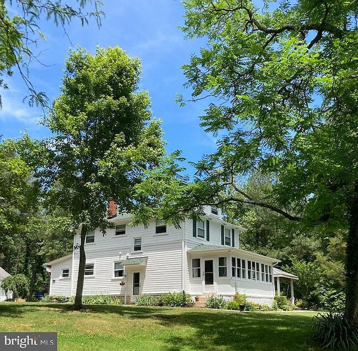 This 1927 Historical home has all the charm of a Period home yet the infrastructure of today. You enter the front into the fully enclosed front porch. The quaint foyer welcomes your guests with a view of the steps, the hallway (half bath location) and into the family room. There is hardwood throughout most of the house. The kitchen, situated in the left rear of the home, has all the modern appliances & features a walk in pantry where the fridge is located. The family room (front right) has built in shelves on each side of the fireplace. The dining room (or extended family room) features large windows along the side allowing natural sunlight to flow in while offering a lovely view of the side porch and garden. Upstairs are 3 bedrooms and one full bath. The 4th room is what ever you need it to be. Currently used as an office. The owners had plans to create a main en suite in that area, creating a 2nd full bath upstairs. Just a thought to consider. The attic has pull down stairs , features an attic fan with thermostat. The rafters and flooring leave possibilities to create an open loft area. New roof and sheathing installed Nov 21, 2016. HVAC unit (inside and out plus new 2nd floor return) installed 2015. Windows were updated in 2000 all are working properly. Natural gas is used for the heat, hot water, stove and fireplace. There is an additional line available in the garage for heat. Internet is serviced by fios. There are NEW 10 yr smoke and cm detectors throughout the house. In 2019 the concrete basement was waterproofed with a state of the art French Drain system including new sump pump with battery back up. There is a termite SENT system in place with a contract through 2/2025. In 2019, a new electrical system was installed including a 200 amp meter. In 2022 a new roof top chimney was installed (fireplace) as well as a new flue in the gas heat chimney. This home has public water and a septic system. In 2020 a new pump and baffle were installed, it also includes an interior alarm system. The owners have paperwork for the maintenance over the years. In 2019 the exterior was painted and new shutters installed. The garage is huge with room for 2 cars, a work area and a full storage room in the back. Plenty of room for a tractor and other yard equipment and furniture. The driveway & parking area along with the 5 acre yard, allows for plenty of parking for that special event. 402 Philadelphia Rd has been in the same family since it was completed in 1927. The home was originally constructed using 2 homes from The Village at Perry Point. The homes were deconstructed and transported to the new location and used to build the current house. There is a driveway agreement in place with the home at the bottom of the driveway.