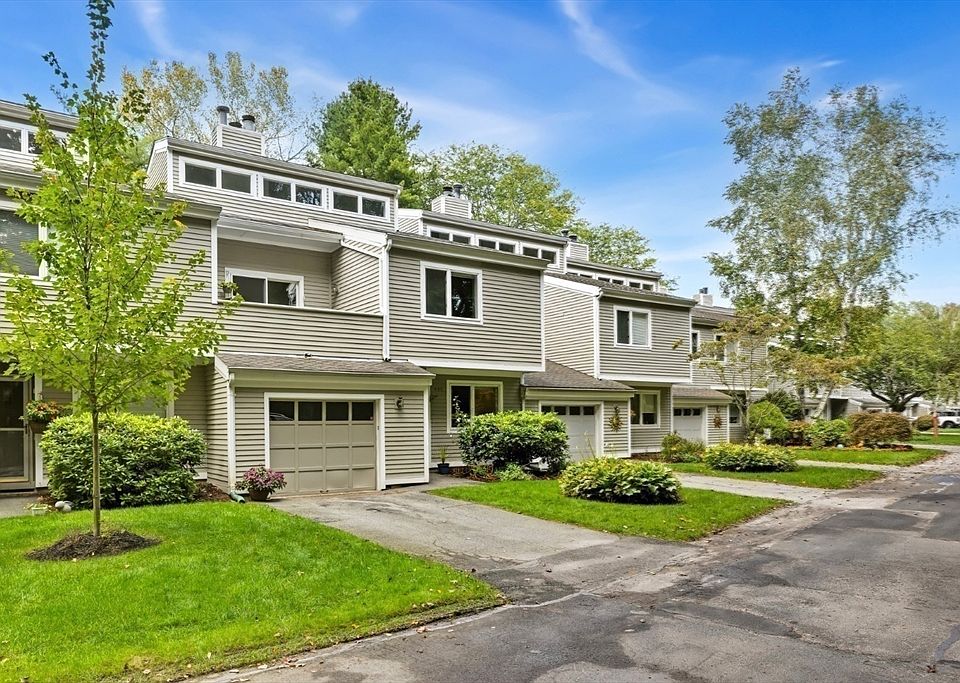 Enjoy the tranquility of this spacious townhome located in the heart of West Peabody. Just minutes from major highways and shopping malls. Attached garage with direct entrance into the foyer. Updated kitchen with Quartz counters, sunlight living room with cathedral ceiling and fireplace. Sliders open onto the new Trex deck perfect for entertaining your friends and family. Primary suite features five closets and new renovated bathroom with walk in shower. Second bedroom has a full bath right outside the door, perfect for older children or guests. Upstairs you will discover a beautiful sitting room with fireplace that opens onto another deck overlooking a serene, wooded area. Finished lower level and a potential bathroom for the future. Storage galore in this stunning townhome that you must see to believe! Nothing to do but move in. Such a hidden gem with clubhouse and pool. Dogs welcome!