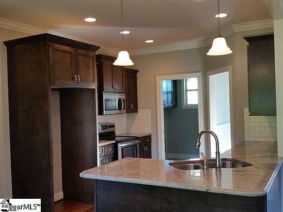 This craftsman style home was built in 2015 on a large corner lot and has only had one owner. Interior features boast an open floor plan with beautiful hardwood flooring in great room, kitchen, dining, breakfast, foyer and halls. Ceramic tile floors in the bathrooms and laundry room. Carpeting in all bedrooms and upstairs bonus room. The dining and master bedroom have coffered ceilings and the great room features a stacked stone fireplace with gas logs that include a blower and remote control. The kitchen features stained maple cabinets, granite countertops and stainless steel appliances. The master bath has a walk-in ceramic tile shower with dual heads, a whirlpool tub, dual vanities, granite countertops and a separate water closet. Other features include a tankless water heater, alarm system, recessed lighting through-out, walk-in attic above the garage, pantry closet in the kitchen, storage area in the garage, natural gas heat, water heater and fireplace logs. Outside you will find a huge deck, fully sodded and fenced yard with sprinkler system.