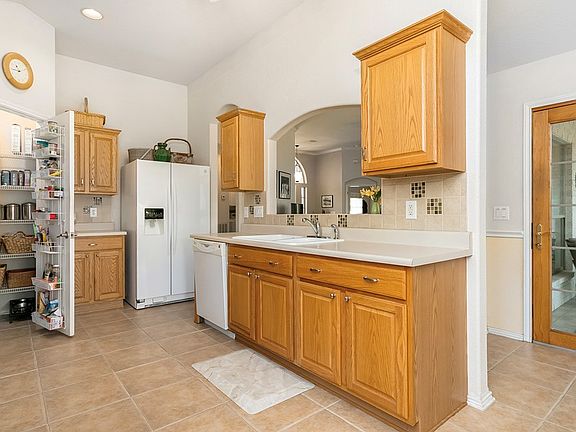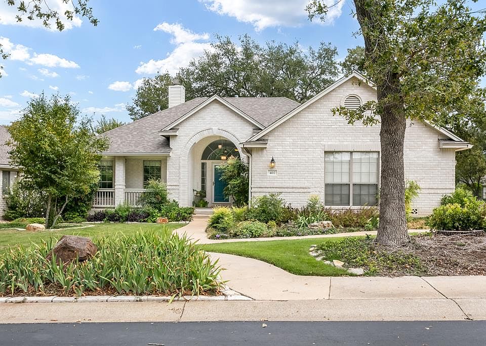Quiet & peaceful home (Medina plan) on a corner lot in over-55 gated community with many amenities including a nature trail. The light filled living space has windows looking to the landscaped backyard & limestone terrace, perfect for entertaining. Kitchen has custom tile backsplash, bay window dining area & French doors to the backyard. The main suite has spacious dressing area & walk-in shower & closet. The front room is perfect for an office or guest bedroom. The 3rd bedroom & guest bath are located across the home offering privacy. Half of the garage has been converted to storage.