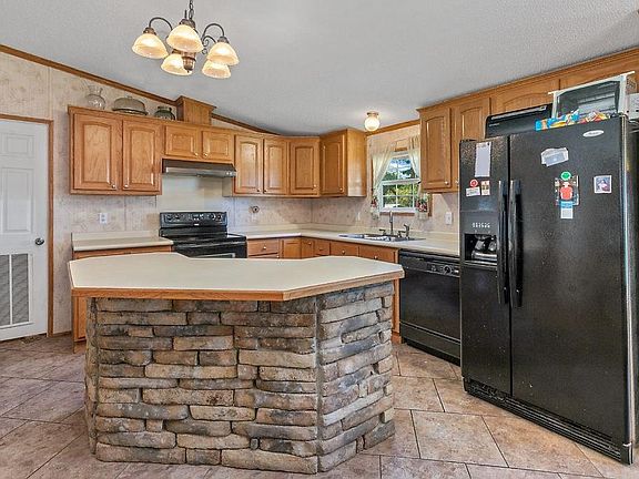 Looking for your own little piece of country living? This 2009 double wide with metal roof sits on just over an acre of property on a dead end street! This well maintained home features 3 bedrooms and 2 bathrooms with a split/open floor plan, kitchen island, large wood burning fireplace, and all appliances are staying with the home. The exterior of the home boasts large 27'x30' covered metal carport, screened in back porch, handicap ramp access, smoke house, 5ft hurricane fencing surrounding most of the property, double piers on the foundation, shed, outbuilding already wired with electricity, & stocked 35'x75' pond with aerator system! This little gem sits in Flood Zone X , where flood insurance isn't typically required! Don't miss out on your chance to call this home yours!