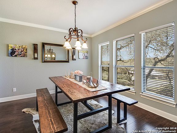 Majestic Texas Hill Country beauty within Valentine Ranch.An exclusive equestrian-friendly community w/horse stables,corrals,parks,pond/creek.Showcasing beautiful open spaces&chic accents throughout an ideal floorplan w/abundant natural lighting ft.gorgeous floors,decor paint,ceiling details,stacked rock fireplace,gourmet kitchen w/stainless steel appliances.Large master retreat&oversized game room w/3spacious guest bedrooms up.Enjoy tranquility outdoors perfect for entertaining on your oversized deck!