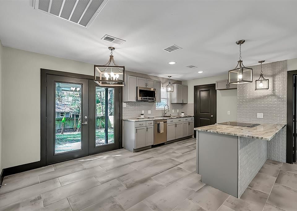 Beautiful and fully renovated property in the heart of Montgomery, only a few minutes (walking and car distance) from Lake Conroe and Waterpoint Marina, one of the most popular and renown junctions of Restaurants and shopping Center. This modern 3 bedroom property is surrounded by tall trees and tropical plants, allowing you to enjoy a peaceful and relaxing morning or evening on your own swing at the front porch or out on your back covered patio. The spacious living and breakfast area next to the designer-look kitchen, are brightened by the side by side glass doors to the patio and the large window overlooking the front porch. Each room has a modern and remote control operated fan with windows overseeing the exterior. Are you a Lake lover and enjoy modern and contemporary style? Then this is for you! 2 Minutes (in car) from SH-105 and 3-5 minutes from the most renown restaurants of Lake Conroe!