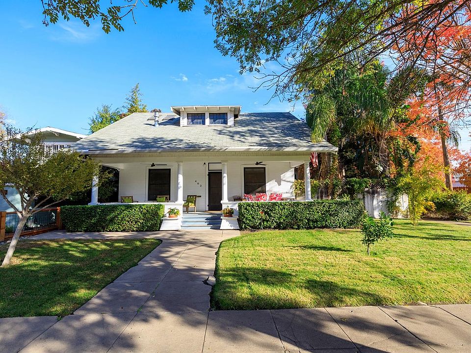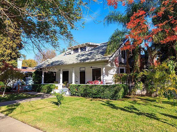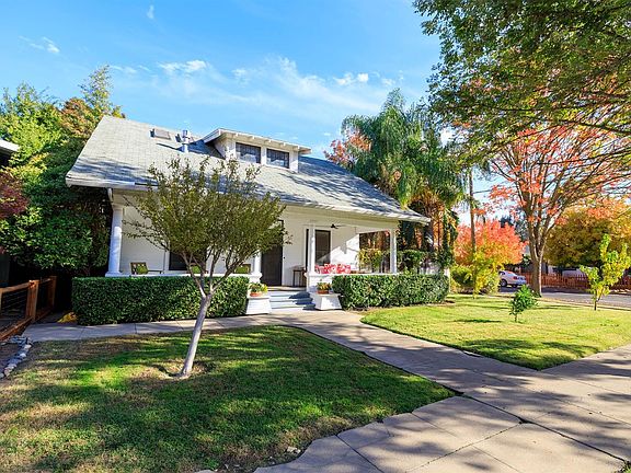 Live, work and vacation at home! This beautiful home features lovely wood floors, high ceilings, updated bathrooms, kitchen and windows, while still keeping the historical charm. There are 2 bedrooms downstairs and a huge upstairs bedroom with sitting area and gas fireplace. Upstairs can be used as primary suite or many other purposes. Upstairs has been plumbed for another bathroom as well. The kitchen is a chef's dream featuring a Viking 8 burner /6w/griddle range and double oven, granite slab counters, ample work space overlooking your outdoor paradise. The back and side yard are the epitome of outdoor California living. There you will find lush tropical landscape with natural stone, gas piped fire pit, large covered patio and gorgeous saltwater pebble tech pool w/ beautiful waterfalls. It has a detached oversized 2 car garage with additional shop/storage area. Caddie corner to Modesto's historic Graceada park that features tennis courts, play areas, and concerts in the park. 2021-05-20