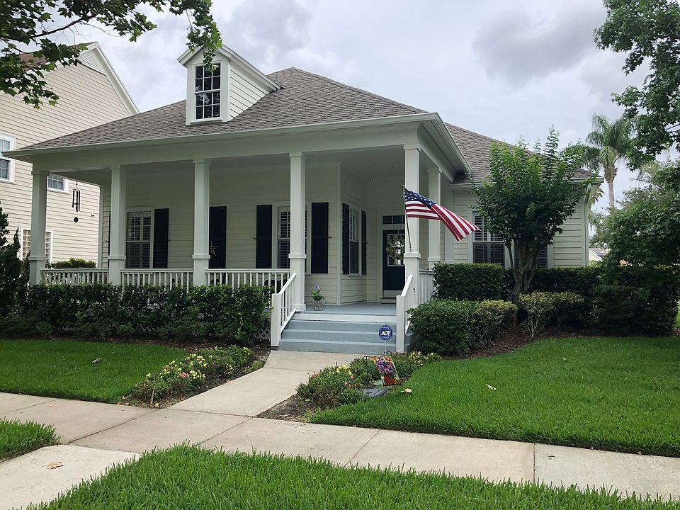 Single Story Celebration Village "The DOONE" with 4 Bedrooms and 3.5 Baths/ NEW ROOF, NEW 15 SEER A/C SYSTEM IN MAIN HOUSE, NEW 50 GALLON WATER HEATER. Just blocks from Downtown and one house away from Golfpark and the renowned Robert Trent Jones Golf Club. Lovely Front Porch on this Sycamore lined Street. Wide Front Porch is great place to relax and get to know your neighbors. As you enter the tile foyer there is laminate flooring throughout much of the living space. Formal Dining room has crown molding and opposite are Glass French Doors to the Study or Office with Custom Built-in shelving. Large Living Room has expansive Palladian Windows, Double Crown Molding, Wood Burning Fireplace & Media Niche. NEW Main house Air Conditioner and Roof. Family Room opens to the Kitchen with Eat-in Breakfast space. Kitchen features: Center Island with GE Monogram downdraft cook top, Refrigerator, Built-in Oven & Microwave, Dishwasher plus double sink with updated faucet. XL Laundry Room off the Kitchen. Expansive Master Suite looks out on the Backyard through large Bay Windows with private entrance to Large Covered Porch. Master Bath has dual vanities, Large Walk-in Closet, Exclusive Walk-in Hydro Massage Jetted Tub w/ Separate Glass enclosed Shower. Backyard Paver Patio great for entertaining. Across the patio is XL 2.5 Car Garage with 2 large parking spaces. Private Entrance to the Efficiency Garage Apartment with Full Bath, Kitchen and Murphy Bed (great Rental Income Opportunity or Guest Quarters).