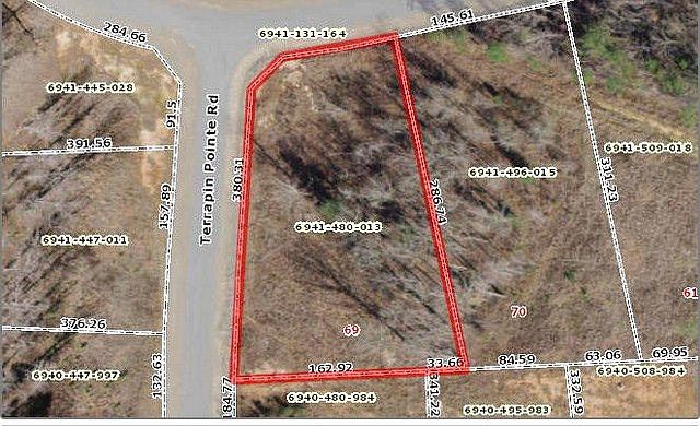 Beautiful lot for your dream home. Terrapin Pointe is a gated community with boat ramp, access to dock in common area and beautiful rolling terrain. Located only minutes to Greenwood.