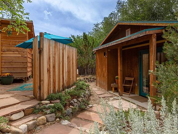 Turnkey 1BR Standalone Casita with a Party Patio- Steps from Taos Plaza! This is more than a home, it's a fully furnished, move-in-ready Taos Experience. A true Unicorn in the heart of town, this private casita is filled with natural light, artistic flair, and Northern New Mexico soul. Thoughtfully renovated and COMPLETELY APPOINTED, the home is being offered fully furnished, featuring a handpicked collection of works by some of Taos' most beloved local artists- no imports, no replicas, just real local talent. This sweet gem has everything you need- a fantastic kitchen with diner bar topped with the coolest countertops, new appliances and loads of storage. The efficient layout and use of space has afforded room for everything- a living room, a dining area, a sleeping nook, THREE closets and a luxurious bath with full sized front-loading washer and dryer. Just outside the house is a fully enclosed private party patio with a deluxe shed equipped with power. Many, many options for what you could do with this space and this new, well-built, weather-proof shed. There is a currently a grill and some lounge-y furniture and this generous outdoor entertaining area is surrounded by a tall privacy fence! Trujillo is a quiet, dead end street and just a short jaunt from the Plaza and all that town has to offer. Close to shops, galleries, restaurants, bars, concerts at Kit Carson park. This property is also moments away from Sunset Park, an urban green-space oasis. Or just down the street you can check out your neighborhood llamas, this location is a fun mix of urban convenience and serene nature bathing. From furniture to fine art, every detail has been chosen with care, creating a turn-key sanctuary that's truly one-of-a-kind. Whether you're seeking a pied-a-terre, a boutique short-term rental, your own creative escape, or a tiny in town home, this is that rare kind of listing in this price range-one that needs nada!!! Artfully Taos. Fully Yours.