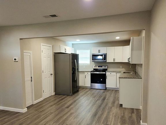 Completely remodeled & move-in ready 3 bed 2 bath. Open concept liv/dining/kitchen, Gorgeous new kitchen w/ shaker cabinets w/ soft-close doors/drawers, granite counters, stainless sink, All new stainless appliances including New Fridge. Hallway bath has ceramic tile floor & custom glass door tile shower, Large laundry room. Split floor plan. Master bedroom has recessed lighting walk-in closet and Spacious Master Bathroom with tub/ shower. New Roof (2023) HVAC (2023) new on-demand water heater (2023) new double pane windows, Faux wood blinds, , recessed lighting and smoke and carbon monoxide detectors throughout the home. Freshly Painted inside, outside storage building, No Survey