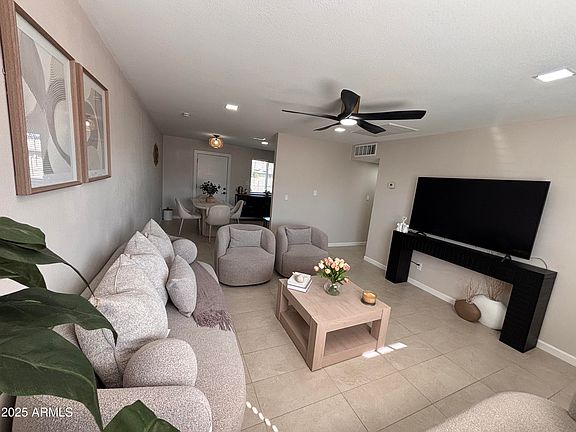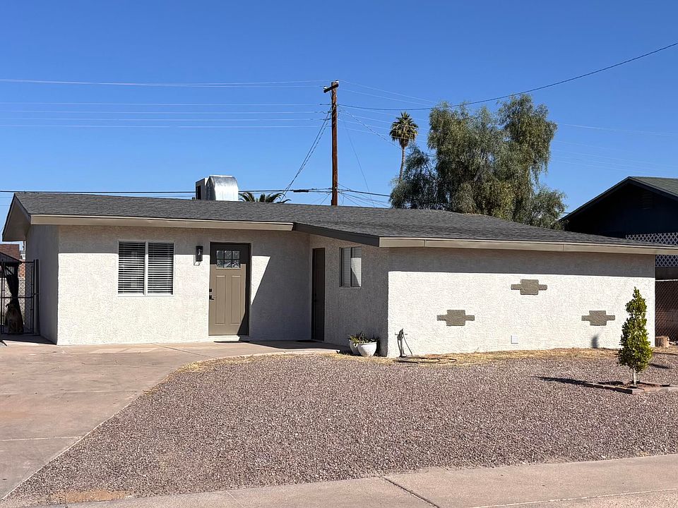 Step into this beautifully remodeled 1960's South Phoenix gem blending timeless character with modern comfort! The open-concept living area flows into a stunning updated kitchen with sleek finishes, ceramic counters, and stainless-steel appliances. Enjoy family gatherings under the inviting backyard gazebo — perfect for barbecues or quiet evenings. The attached garage has been converted into a spacious bonus room and laundry area, offering flexible living or work-from-home potential. A rare blend of vintage charm and contemporary lifestyle, ready for its next family!