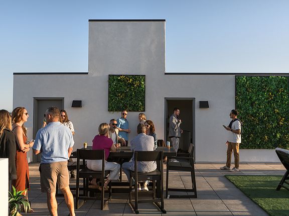 The condo building features a glamorous rooftop deck available to residents and their guests with sweeping views of San Luis Bay to the north and west, and the hills of Arroyo Grande to the east. The rooftop deck includes an outdoor kitchen and multiple fireplaces that are perfect for lounging with friends.
