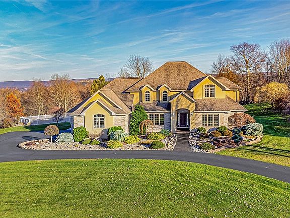 Looking for that perfect home? The 1 that is completely incredible from top to bottom? The 1 with the most perfect views in every season, w/quietness, privacy & picturesque sunsets? Well here it is! You will find this beautiful custom built 1 owner, 4 BD/3.5 BA, 3 car garage beauty nestled in the sought-after Adelaide Hills community on 4.5+ acres. Crafted w/ the highest quality materials & detail everywhere you look. Enter the home & you're greeted w/ an impressive entryway w/ oak stairs leading to the den/3 BD’s/2 full BA’s. On the main level you will find the sitting room & dining room overlooking the Mtn & river views. Through the arched entryway is the spacious living room w/ wall of windows overlooking the private backyard. The elegant kitchen has a breakfast nook & off the kitchen is a sitting area w/ windows & door to the patio & backyard w/inground pool. Master BD/BA along w/laundry on the main level too! Convenient location to major highways. Basement ready to be finished.