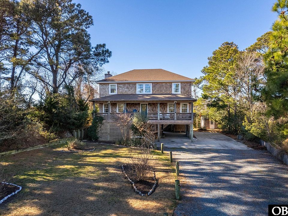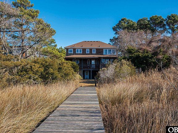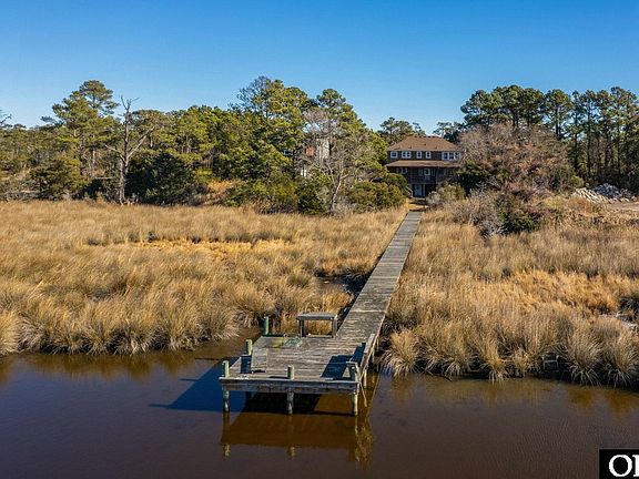 Welcome to your custom Nags Head cottage on a spacious lot—an Outer Banks private oasis that perfectly blends coastal-country charm with enduring character. Enjoy breathtaking sunset views over saltwater marshes and direct water access to Kitty Hawk Bay via an approximate 200' pier stretching to the canal. Covered east- and west-facing porches plus a sunroom seamlessly extend your living outdoors for year-round enjoyment and wildlife observation. Ample parking and storage include an attached garage, detached garage/workshop, large carport with private outdoor shower, storage/flex space, and paved parking. Classic cedar shake siding and a fortified roof complete the exterior.