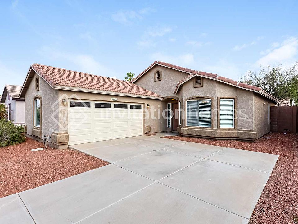 Home Features and Amenities: Air Conditioning, Bay Windows, Fenced Yard, Garage, Kitchen Island, Long Lease Terms, Open Floorplan, Patio, Pet Friendly, Primary Bedroom on Main, Single Story House, Smart Home, Tile, Walk in Closet, W/D Hookups, and professionally managed by Invitation Homes.