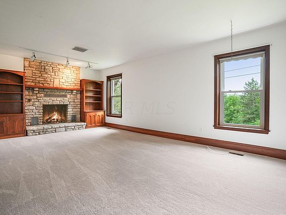 Welcome to your enchanting retreat in Delaware County! This charming brick home, filled with character, features 3 bedrooms, 1.5 baths, spacious living room, and laminate flooring. Enjoy the ambiance of a stone decorative fireplace and the convenience of built-in bookshelves. The kitchen offers a lovely eat-in space, perfect for delicious meals. Outside, you'll find a stocked pond, a deck for relaxation, and a shed for extra storage. This gem in Delaware City Schools offers serene living while remaining conveniently close to downtown Delaware.