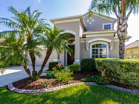 Country Walk Show Stopper!!! We are pleased to offer this resplendent home to the market, with over 3000 square feet of living space and 5 bedrooms, 3 bathrooms, and a beautiful backdrop of the lush conservation. Located at the end of a quiet cul de sac, this open and airy floor plan includes a spacious kitchen and separate breakfast area that features granite counter tops, 42" cabinetry, stainless steel appliance package, and stylish tile back splash. The Family Room is adjacent to the kitchen and overlooks the covered entertainment space, large fenced backyard! The master suite displays custom built, walk-in closet, dual sinks, soaking tub with separate shower, and provides the prefect evening retreat. There is a guest suite on the first floor with the remainder of bedrooms on the second. An expansive flex room adds to the appeal of this home by providing a potential game or media room, with endless possibilities. **Brand NEW Carpet, Brand NEW Interior Paint** The Country Walk community offers a dog park, two large resort style swimming pools, soccer field, playground, basketball courts, tennis courts, fitness center, a state of the art clubhouse available to rent for private parties, and community activities galore! Wesley Chapel Florida is one of the fastest growing areas in Tampa Bay, with open aired malls and outlet shopping, a wide variety of restaurants, entertainment, recreation, brand new hospitals, hotels, and conveniently located to many major highways.