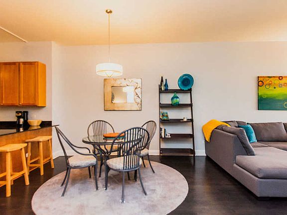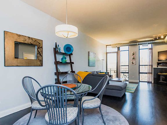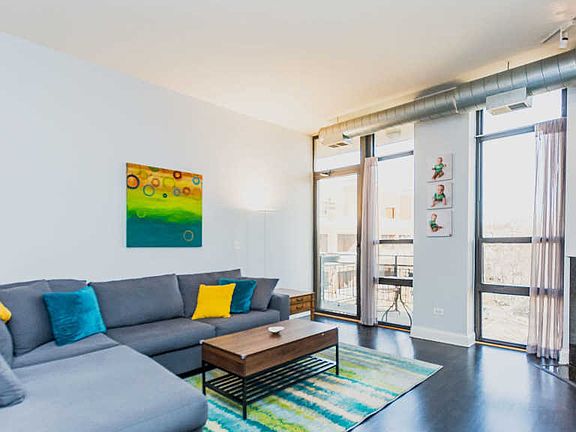 Beautiful 2 bed 2 bath condo nestled in the heart of North Center. Wide open layout great for entertaining, 10' dramatic ceiling height, floor to ceiling windows, great usable space & concrete between floors for great sound insulation. Newly refinished dark stained hardwood floors, freshly painted, carpets just cleaned and ready to move right in. Tons of room for separate living & dining areas plus additional space that could be used for an office or reading nook. Kitchen opens to the living/dining space, features 42" cabinets, granite counters and breakfast bar. Large master suite with Hunter Douglass blinds, double closets and marble master bath. Good closet space throughout, additional 3x3x8 storage cage in garage plus indoor heated garage parking included in the price. 2 blocks from the EL, steps from local breweries, groceries, restaurants & nightlife. Make sure to view pictures for the North Center Town Square renovation. Located in the coveted Coonley School district