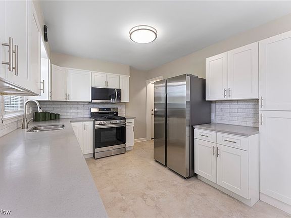 Wait until you see this house! A solid brick Cape Cod nestled near Mill Creek Park offers new construction amenities in a charming mid-century home. Brand new slow-close kitchen cabinets, quartz countertops, stainless steel appliances, tiled backsplash, flooring, stainless steel sink, and lighting in the kitchen (2024), while the main bathroom boasts a new porcelain-over-metal tub, vanity, countertop, fixtures, toilet, lighting, and flooring (2024). Newer windows throughout the first and second floors (2021), newer roof (2023), electrical with hard-wired smoke detectors and carbon monoxide (2024), interior doors (2021), and steel entry doors. Furnace and a/c were new in 2008, water tank 2009. You'll also find a wood-burning fireplace in the living room, hardwood floors throughout the entire first floor and second floor (refinished in 2021), tons of closet space, and a clean, dry basement. An updated full bathroom in the lower level rounds out the house. A chain-link fence offers privacy for the backyard along with an 8 x 10' enclosed porch off the breezeway. A two-car garage with and extended area is also a plus! Don't miss your chance to own of the finest homes in the Boardman School District!