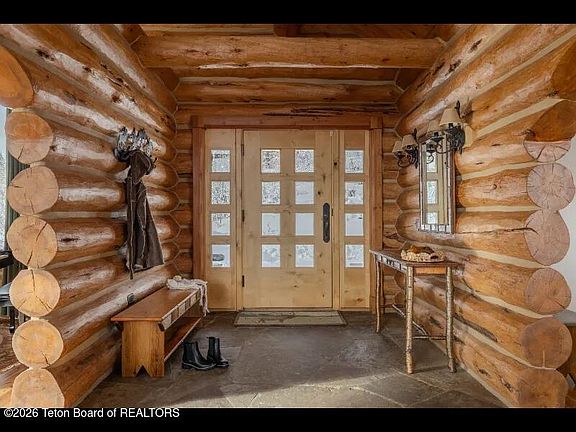 Set on 7.94 private acres in the rural Hidden Hills neighborhood, this classic Jackson Hole log home enjoys a lovely setting with elevated views, sagebrush meadows dotted with wildflowers, aspen groves and willows that welcome Jackson's amazing wildlife. Bordering National Forest, the property offers outdoor enthusiasts easy access to untouched snow for backcountry skiing or quiet trails for hiking. The 3,900 sf home offers 2 bedrooms & 3 bathrooms. Two bonus rooms may be used for additional sleeping space or a variety of other functions: office, recreational room, art studio, gym, etc. Enjoy in-floor radiant heat & ac, vaulted ceilings, a gas fireplace & a screen & projector for movie night. Other highlights include a pantry, laundry room & sauna. Located just 20 min. from Wilson