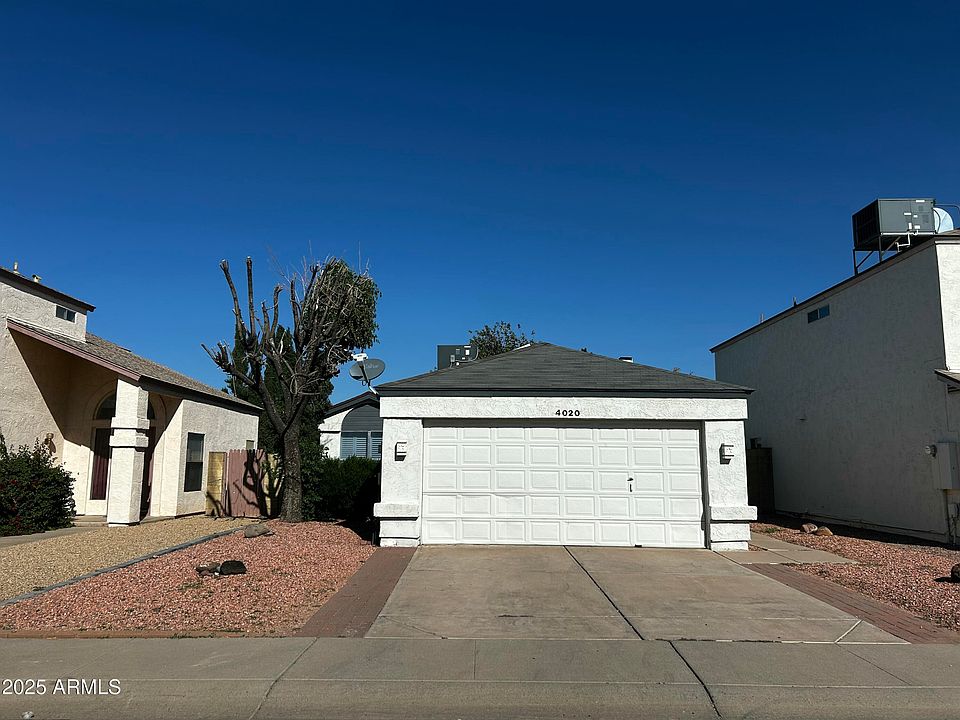 Cozy 3 bedroom 2 bath home located in North Canyon Ranch. Generous great room with majestic staggered stone fireplace. Wood look tile flooring through out home. Dual pane windows with shutters providing ample lighting for that airy feeling. Vaulted ceiling with fans creating that spacious experience. Layout with a split floor plan. Kitchen and bathroom with a modern touch previously upgraded including appliances. 2 car separate garage. Large tree in back for plenty of shade.