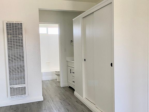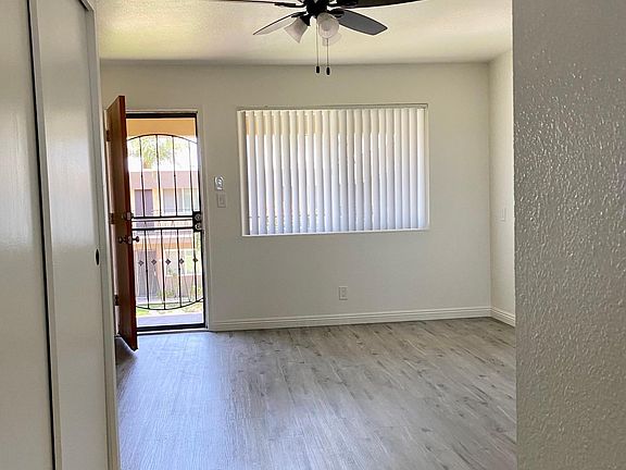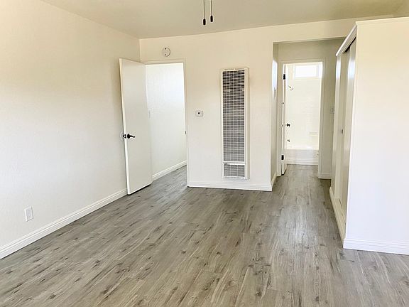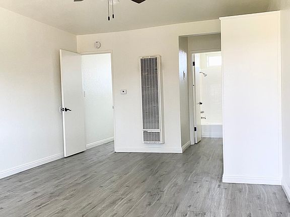 Stove provided in the unit. Fresh paint, new kitchen, hardwood floors, wall heater, ceiling fans, a lot of storage space.