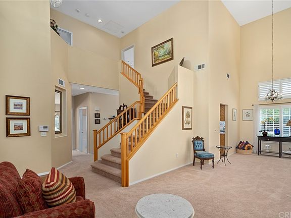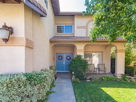 Whether its the Antelope Valley from the front yard, or the foothills and California Aqueduct from the backyard, this Rancho Vista home at the top of the hill offers incredible views all around! Located at the end of a cul-de-sac on nearly half an acre, this 5 bedroom home boasts over 2600 sf of living space. The formal living and dining rooms feature cathedral ceilings and plantation shutters. The kitchen has plenty of counter space and storage, a family dining area, and is open to the family room. A downstairs bedroom, full bathroom, and laundry room completed the first floor. Upstairs, the master bedroom has an attached master bathroom and a private walk out balcony overlooking the backyard and beyond. Three additional good sized bedrooms are down the hall and another full bath. Outside, the landscaped backyard is ready for entertaining with 2 patio areas and above ground spa. Steps lead to the top of the yard with a gate for access to walking trails and the Aqueduct. Solar lease! See it today!