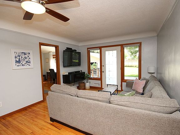 Fall in love with this ranch that has a mix of mid-century charm that is close to downtown. Enjoy the original hardwood floors, pocket doors, and the cove ceilings. This ranch home has been updated to give an open concept which is great for entertaining. The kitchen has been fully renovated by opening it up, new floors, adding an island, new fixtures, new appliances including adding a dishwasher and clean/slick white modern cabinets. The back "flex room" has been a bedroom, formal dining room, and a home office - we love the versatility. The basement is clean with plenty of space for storage, laundry area, non-conforming room, and 3/4 bathroom. The deck is huge and perfect to entertain on! The backyard features a firepit that backs up to a park and has great views - the large windows provide a lot of light and the front windows are well placed for privacy! Schedule a time today.